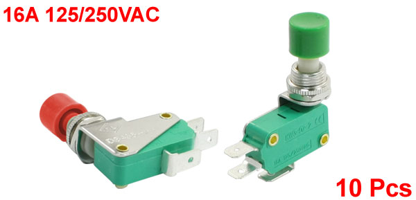 10Pcs 16A 125/250VAC 1NO 1NC SPDT Green Red Push Type Miniature Micro Switch