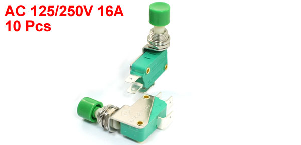 Button Diameter 13mm/0.51" Total Size 40 x 11 x 48mm/ 1.6" x 0.43" x 1.9" (L*W*H) Material Plastic, Metal Main Color Green, Silver Tone Weight 192g Package Content 10 x Micro Switches - Reviews