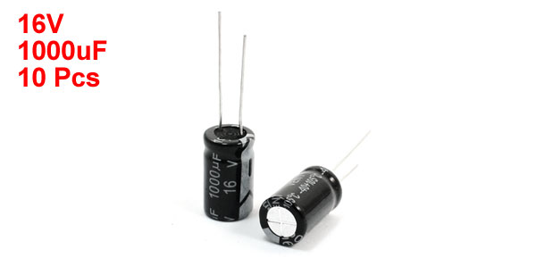 Capacitance 1000uF Diameter 10mm Height 17mm Lead Space 4mm Lead Length 20mm, 25mm Total Weight 17g Main Color Black Package Content 10 x Electrolytic Capacitors - Reviews