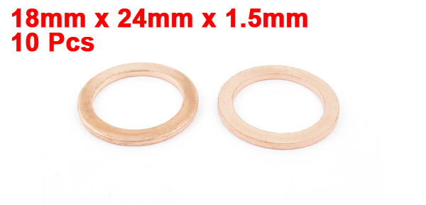 10Pcs 18 x 24 x 1.5mm Fasten Copper Flat Washer Ring Seal Fitting