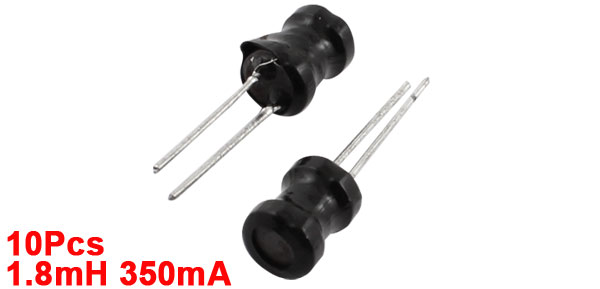 Product Name Radial Lead Inductor Inductance 1.8mH Rating Current 350mA Tolerance 10% Body Size 6 x 8mm / 0.24" x 0.31"(D*H) Lead Distance 3mm / 0.12" Color Black, Silver Tone Weight 10g Package Content 10(±2%) x Radial Lead Inductor - Reviews
