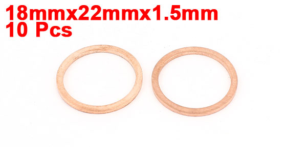 Details10PCS 18x22x1.5mm Copper Flat Washer Gaskets Spacer Seal Fitting Fasteners  Product Name Copper Washer Total Size 18 x 22 x 1.5mm/0.7" x 0.87" x 0.06"(Inner Dia*OD*T) Material Copper Color Copper Tone Net Weight 14g Package Content 10 x Copper Washers