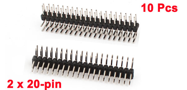 Product Name Pin Header Pin Count 2 x 20Pin Type Double Row Mounting Angle 90° Pin Pitch 2.54mm Total Size 50 x 13 x 8mm/ 2" x 0.5" x 0.32"L*W*H) Material Plastic, Metal Color Black, Silver Tone Weight 28g Package Content 10 x Pin Header - Reviews