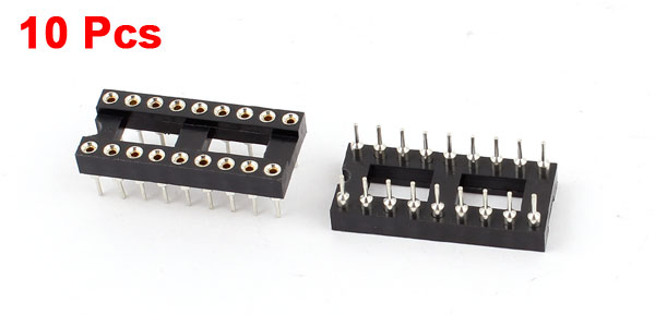 Product Name DIP IC Socket Design Round Pin Type Dual Row, DIP Pitch 2.54mm / 0.1" Pin Number 18 Pin Length 4.5mm/0.18" Row to Row Distance(Approx) 15mm / 0.6" Each Size(Approx) 23 x 10 x 7.5m / 0.9" x 0.4" x 0.3" (L*W*H) Material Plastic, Metal Color Black, Silver Tone Net Weight 15g Package Content 10Pcs x DIP IC Sockets - Reviews