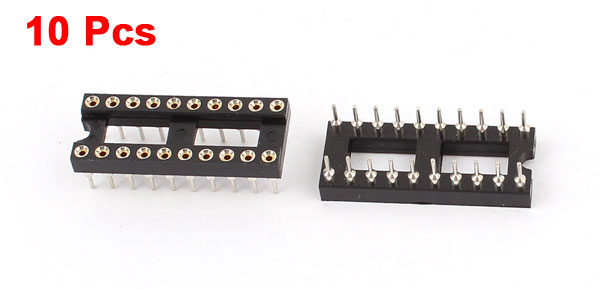 Product Name DIP IC Socket Design Round Pin Type Dual Row, DIP Pin Length 4.5mm/0.18" Pitch 2.54mm / 0.1" Pin Number 20 Row to Row Distance(Approx) 7.5mm / 0.3" Each Size(Approx) 25 x 10 x 7.5m / 1" x 0.4" x 0.3" (L*W*H) Material Plastic, Metal Color Black, Silver Tone Net Weight 15g Package Content 10Pcs x DIP IC Sockets - Reviews