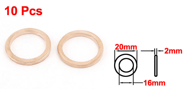 10PCS 20mm OD 16mm ID 2mm Thick Copper Washer Flat Ring Oil Brake Line Seal