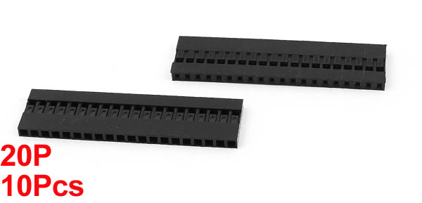 Product Name Jumper Wire Female Pin Connector Type 20P Pitch 2.54mm Size(Approx.) 51 x 14 x 2.5mm/2" x 0.6" x 0.1"(L*W*T) Color Black Metarial Plastic Net Weight 12g Package Content 10 x Jumper Wire Female Pin Connectors - Reviews