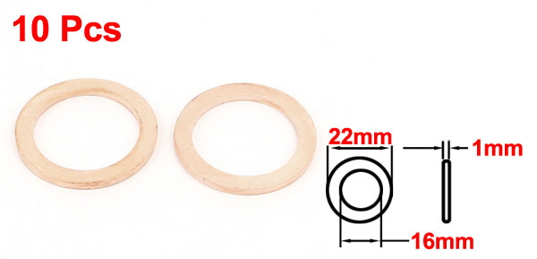 10PCS 22mm OD 16mm ID 1mm Thick Copper Washer Flat Ring Oil Brake Line Seal
