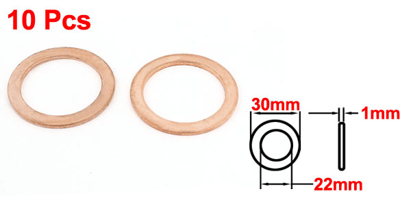 10Pcs 22mmx30mmx1mm Copper Crush Washer Flat Seal Ring Gasket Fitting