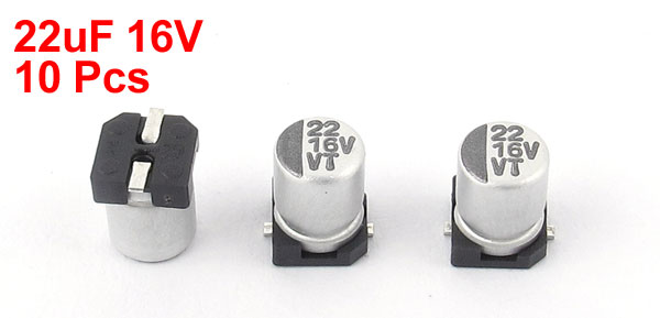 Capacitance 22uF Tolerance +/-20% Body Size 5mm x 6mm/ 0.2" x 0.24"(D*H) Total Weight 4g Main Color Silver Tone, Black Package Content 10 x SMD Electrolytic Capacitors - Reviews