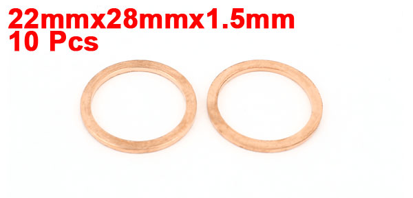 Details10Pcs 22x28x1.5mm Copper Flat Washer Gasket Spacer Seal Fasteners for Industrial  Product Name Copper Washer Total Size 22 x 28 x 1.5mm/0.87" x 1.1" x 0.06"(Inner Dia*OD*T) Material Copper Color Copper Tone Net Weight 25g Package Content 10 x Copper Washers