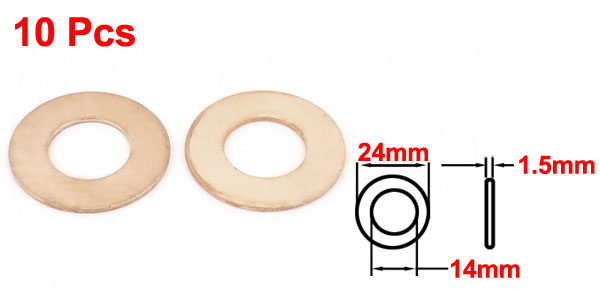 10PCS 24mm OD 14mm ID 1.5mm Thick Copper Washer Flat Ring Oil Brake Line Seal