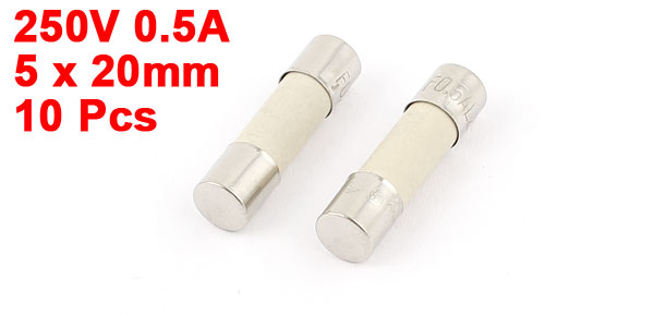 10Pcs 250V 0.5A 500mA Fast Blow Ceramic Fuses Tubes 5mm x 20mm
