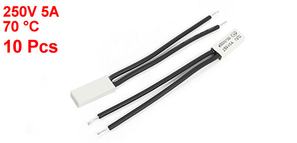 Product Name Temperature Control Switch Model KSD9700 Type NO(Normally Open) Contact Capacity 250V 5A Temperature 70 °C Material Plastic, Bimetal Color Black, White Head Size 20 x 8 x 4.5mm/ 0.79" x 0.31" x 0.18"(L*W*T) Total Length 9.7cm/3.8" Weight 16g Package Content 10 x Temperature Control Switch - Reviews