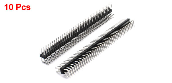 Product Name Pin Header Pins 80 Pin(2*40 Pin) Row Dual Row Mounting Angle 90 Degree Pin Pitch 2.54mm Total Length 100mm/4" Material Plastic, Metal Color Black, Silver Tone Weight 59g Package Content 10 Pcs x Pin Headers - Reviews