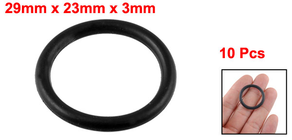 Details10Pcs 29mm Outer Dia 3mm Thickness Rubber Oil Filter Seal Gasket O Ring  Product Name O Ring Material Rubber Color Black Outside Diameter 29mm / 1.1" Inside Diameter 23mm / 0.8" Thickness 3mm / 0.1" Weight 8g Package Content 10 Pcs x O Rings