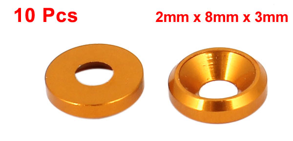 10Pcs 2mm x 8mm x 3mm Aluminium Alloy Washers Spacers Rings Orange