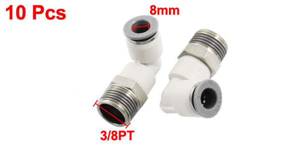 10Pcs 3/8 PT Male to 8mm OD Tube L Type Air Quick Release Connectors