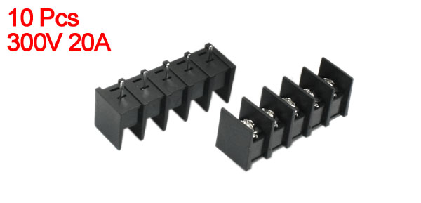 Product Name Barrier Terminal Block Material Metal, Plastic Rated Value 300V 20A Poles 5 Positions Single Row Size 4.3 x 1.3 x 1.5cm/ 1.7" x 0.5" x 0.6" (L*W*T) Color Black Net Weight 90g Package Content 10 x Barrier Terminal Block - Reviews