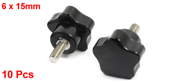 10pcs 30mm Dia Star Shape Head M6x15mm Thread Clamping Knobs Black