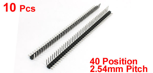 Product Name Pin Header Position 40 Row 1 Mounting Angle Right Angle Pin Pitch 2.54mm Total Size 101 x 10 x 5mm/ 4" x 0.4" x 0.2"(L*W*H) Material Plastic, Metal Color Black, Silver Tone Net Weight 25g Package Content 10 x Right Angle Pin Header - Reviews