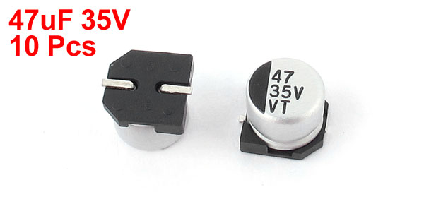 Capacitance 47uF Tolerance +/-20% Body Size 6mm x 5mm/ 0.24" x 0.2"(D*H) Total Weight 4g Main Color Silver Tone, Black Package Content 10 x SMD Electrolytic Capacitors - Reviews