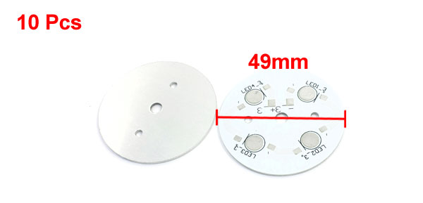 Product Name Aluminum PCB Circuit Board Fit for 4pcs x 1W/3W/5W LED Dia 49mm/2" Thickness 1.4mm/0.05" Mounted Hole Dia Small: 3mm/0.12"