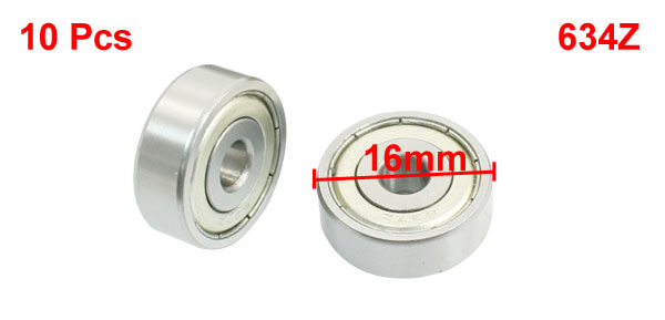 Product Name Deep Groove Ball Bearing Model No. 634Z Inner Diameter 4mm / 0.16" Outer Diameter 16mm / 0.63" Height 5mm / 0.2" Color Silver Tone Material Metal Net Weight 51g Package Content 10 Pcs x Deep Groove Ball Bearings - Reviews