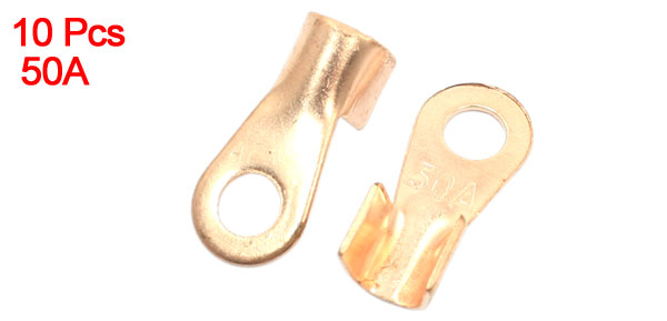 Details10pcs 50A Ring Tongue Cable Wiring Welding Copper Connector Terminal  Product Name Ring Tongue Cable Connector Terminal Current 50A Ring Size 7 x12mm / 0.27" x 0.47"(Inner Dia.*OD) Cable Connector Size 9 x 8mm / 0.35" x 0.31"(Inner Width*Length) Overall Length 28mm / 1.1" Material Copper Weight 28g Package Content 10 x Ring Tongue Cable Connector Terminal