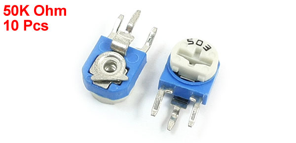 Product Name Vertical Variable Resistor Trimmer PotentiometerResistance Value 50K Ohm Resistive Material Metal, Plastic Body Size (Approx.) 7 x 6.5 x 4mm / 0.28" x 0.26" x 0.16"(L*W*T) Pin Size (Each) 5 x 0.8mm / 0.2" x 0.03" (L*Tip Width) Color White, Blue, Silver Tone Weight 2g Package Content 10 x Vertical Variable Resistor Trimmer Potentiometers - Reviews