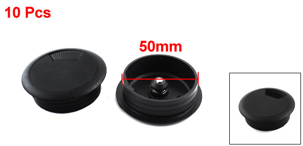 10Pcs 50mm Thread Black Round Plastic Computer Desk Cable Hole Cover 60mm