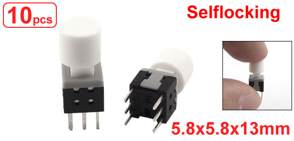10pcs 5.8 x 5.8 x 13mm Panel PCB Self Lock Tactile Tact Push Button Switch w Cap