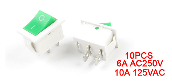 Total Size(Each One) 21 x 15 x 25mm/ 0.83" x 0.6" x 1"(L*W*T) Mounting Size 19 x 13 x 20mm/ 0.75" x 0.51" x 0.8"(L*W*T) Color White, Green Material Plastic, Metal Total Weight 33g Package Content 10 x Rocker Switch - Reviews
