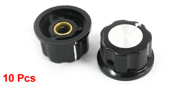 Product Name Potentiometer Control Knob Knob Top Diameter 23mm / 0.9" Knob Base Diameter 27mm / 1.06" Shaft Insert Diameter 6mm / 0.24" Knob Total Height 10mm / 0.4" Material Plastic, Metal Main Color Black, Silver Tone Net Weight 83g Package Included 10 x Potentiometer Control Knob - Reviews