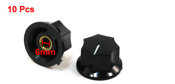 Product Name Potentiometer Control Knob Knob Top Diameter 23mm / 0.9" Knob Base Diameter 27mm /1.1" Shaft Insert Diameter 6mm / 15/64" Knob Total Height 16mm / 0.63" Material Plastic, Metal Main Color Black, White Weight 70g Package Included 10 x Potentiometer Control Knob - Reviews