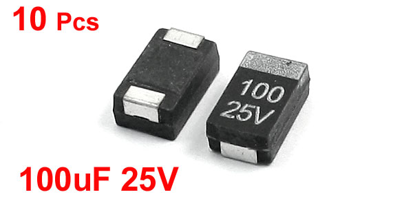 Product Name Chip Tantalum Capacitor Rated Voltage 25V Capacity 100uF Type 7343 D Type Each Size(Approx.) 7.3 x 4.3 x 3mm/ 0.29" x 0.17" x 0.12"(L*W*T) External Material Tantalum, Metal Weight 5g Package Content 10Pcs x Chip Tantalum Capacitor - Reviews