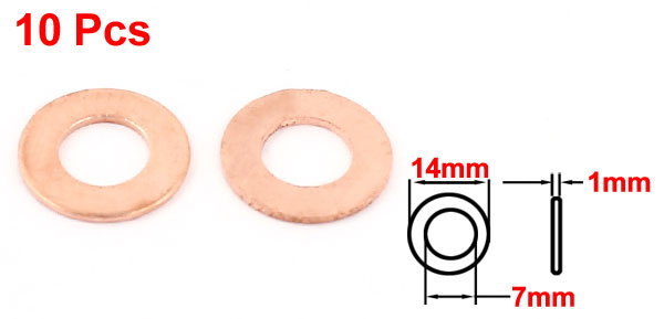 Product Name Copper Washer Total Size 7 x 14 x 1mm/0.28" x 0.55" x 0.04"(Inner Dia*OD*T) Material Copper Color Copper Tone Net Weight 9g Package Content 10 x Copper Washers - Reviews