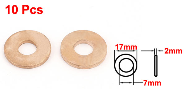 Details10Pcs 7mmx17mmx2mm Copper Crush Washer Flat Ring Gasket Fitting  Product Name Copper Washer Inner Diameter 7mm/0.28" Outer Diameter 17mm/0.67" Thickness 2mm/0.08" Material Copper Color Copper Tone Weight 32g Package Content 10Pcs x Copper Washer