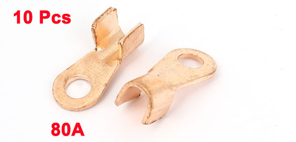 10Pcs 80A Open Cable Connector Ring Lug Copper Passing Through Terminals 8mm Dia