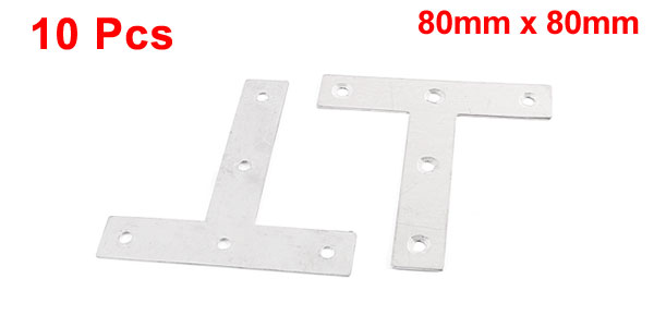 10PCS 80mm x 80mm Metal T Shaped Angle Plate Corner Brackets Fasteners