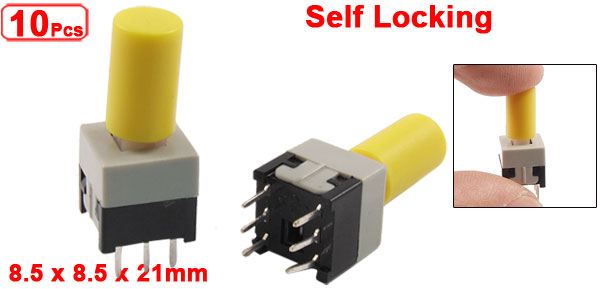 10pcs 8.5 x 8.5 x 21mm PCB Self Lock Tact Tactile Push Button Switch 6 Pin w Cap