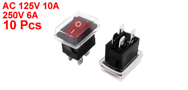 Product Name Waterproof Rocker Switch Main Color Red, Black Net Weight 53g Brand DMiotech Total Size(Each) 25 x 30 x 18mm/ 1" x 1.2" x 0.7"(L*W*H) Positions Number 2 Country of Manufacture CHINA Model KCD1-104 Package Content 10 x Waterproof Rocker Switches Voltage/Current AC 125V/10A 250V/6A Material Plastic, Metal Connection Type DPST - Reviews