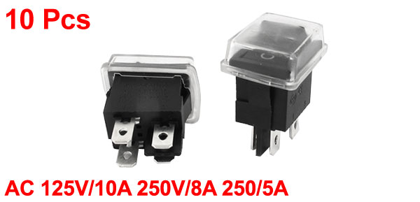 Main Color Black Product Name Waterproof Rocker Switch Net Weight 54g Brand DMiotech Total Size(Each) 25 x 30 x 18mm/ 1" x 1.2" x 0.7"(L*W*H) Positions Number 2 Country of Manufacture CHINA Package Content 10 x Waterproof Rocker Switches Voltage/Current AC 125V/10A 250V/8A 250/5A Material Plastic, Metal Connection Type DPST - Reviews