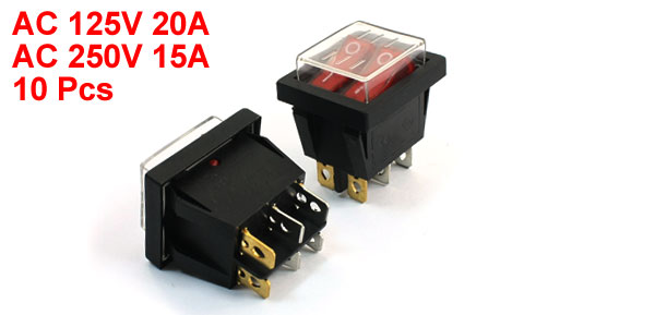AC 250V 15ATotal Size 35 x 29 x 39mm / 1.4" x 1.1" x 1.5"(L*W*T) Mount Hole Size 31 x 22mm / 1.2" x 0.87"(L*W) Lamp Color Red External Color Black, Red Material Plastic & Metal Weight 175g Package Content 10 x Waterproof Rocker Switch - Reviews