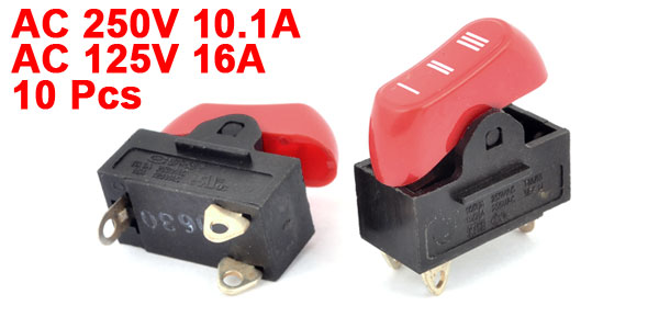 10pcs AC 250V/10.1A 125V/16A 3-Pin SPDT Red Button Snap in Rocker Switch