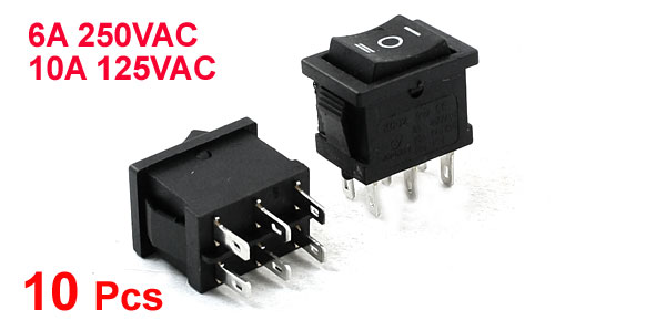 10Pcs AC 250V/6A 10A/125V 6 Pins DPDT Snap in Boat Rocker Switch Black