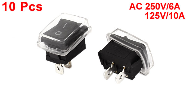 10PCS AC 250V/6A 125V/10A SPST 2 Pin 2 Position Rocker Switch w Waterproof Cover