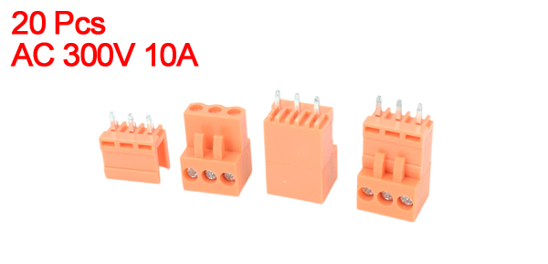 10Pcs AC 300V 10A 3 Pin PCB Screw Terminal Block Connector 3.96mm Pitch Orange