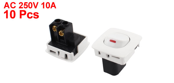 10Pcs AC250V 10A SPST Square Plastic Panel Wall Mount Switch White