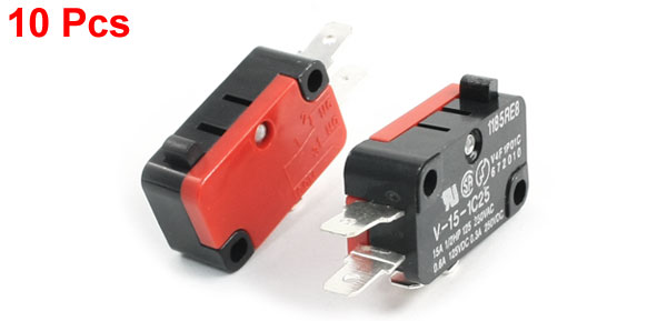 Contact configuration SPDT 1NO 1NC 1COM Total Size 39 x 20 x 10mm/ 1.5" x 0.8" x 0.4" (L*W*T) Material Plastic, Metal Main Color Black, Red Weight 57g Package Content 10 x Micro Switches - Reviews